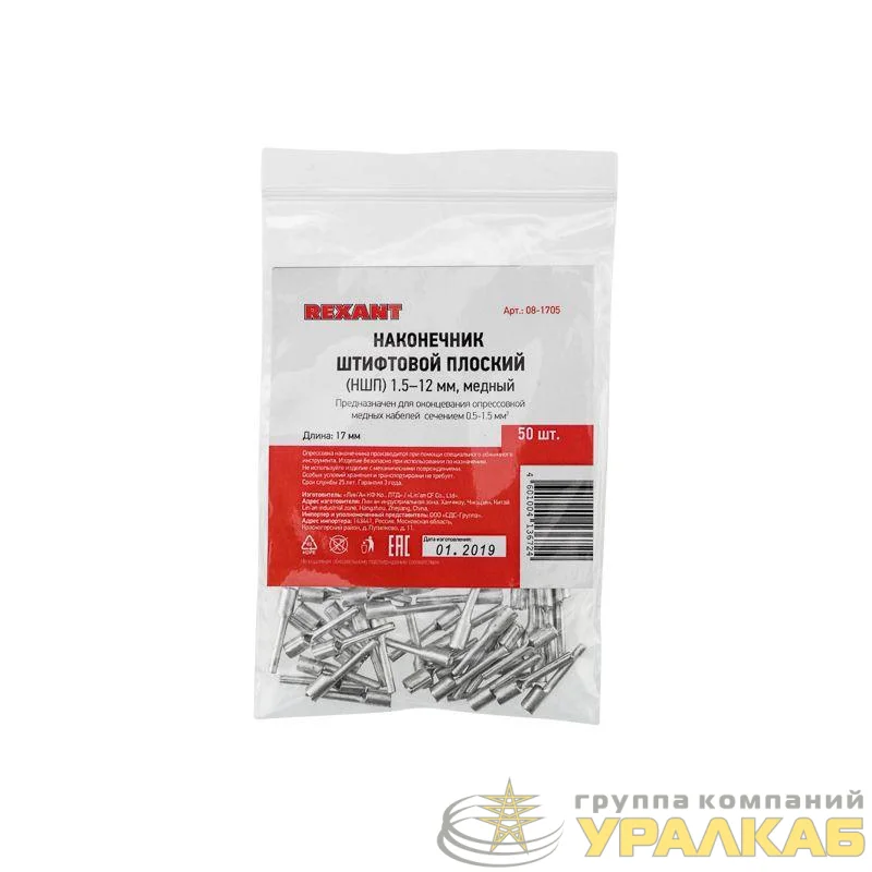 Наконечник штифтовой плоский кабельный (НШП) 1.5-12 Rexant 08-1705