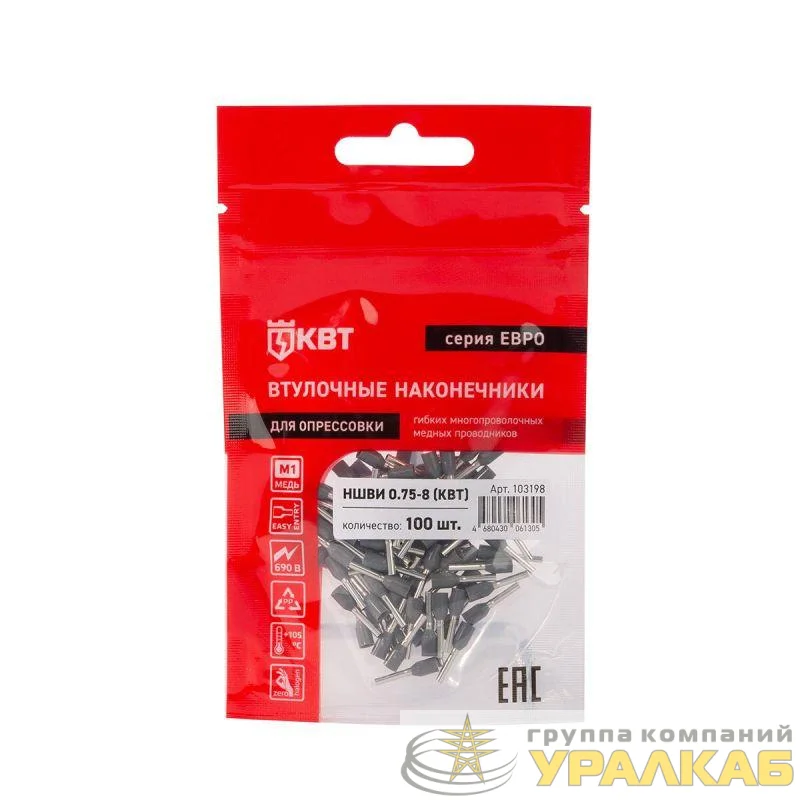 103198 - Наконечник штыревой втулочный изолированный НШВИ 0.75-8 ЕВРО сер. КВТ