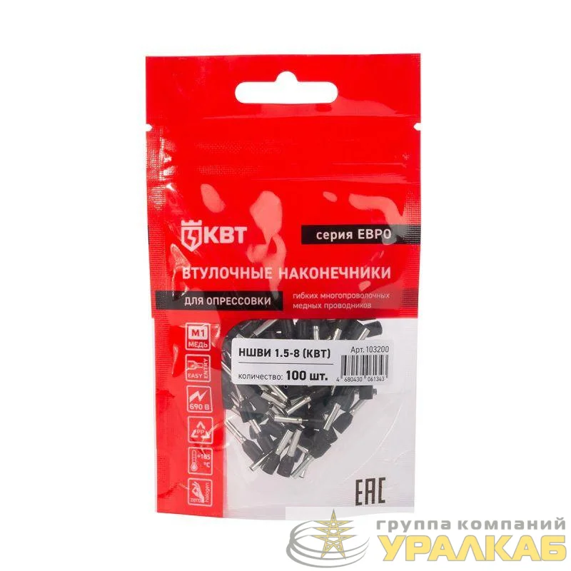 103200 - Наконечник штыревой втулочный изолированный НШВИ 1.5-8 ЕВРО черн. КВТ