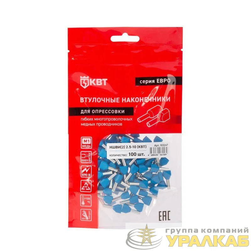 103247 - Наконечник штыревой втулочный изолированный НШВИ(2) 2.5-10 ЕВРО син. КВТ