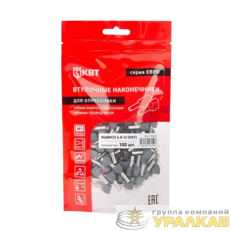 103248 - Наконечник штыревой втулочный изолированный НШВИ(2) 4.0-12 ЕВРО сер. КВТ