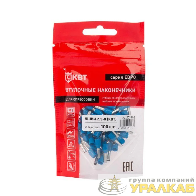 103202 - Наконечник штыревой втулочный изолированный НШВИ 2.5-8 ЕВРО син. КВТ