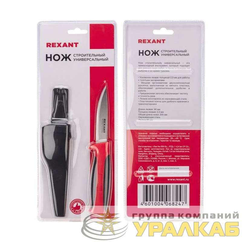 12-4922 - Нож строительный нержавеющая сталь лезвие 90мм Rexant