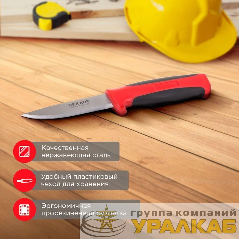 Нож изготовлен из прочных и надежных материалов, благодаря чему он обладает повышенным рабочим ресурсом. Лезвие сделано из нержавеющей стали. Незаменим при выполнении отделочных работ.