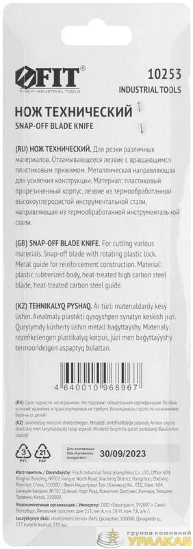 10253 - Нож технический 18мм усиленный прорезиненный вращ. прижим FIT