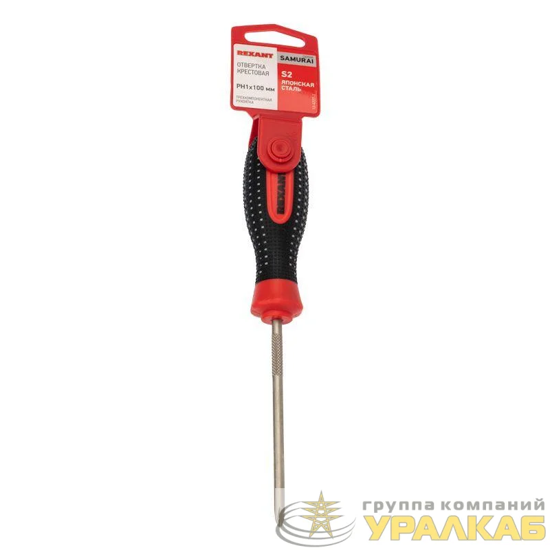Отвертка крестовая PH 1х100мм трехкомпонентная рукоятка сталь S2 Rexant 12-4727-1