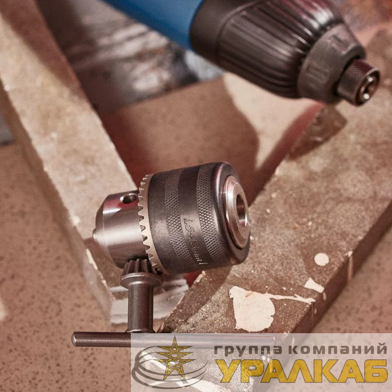За счет рельефной поверхности с патроном удобно работать, так как он не выскальзывает из рук. К патрону прилагается ключ для смены и фиксации сверл.