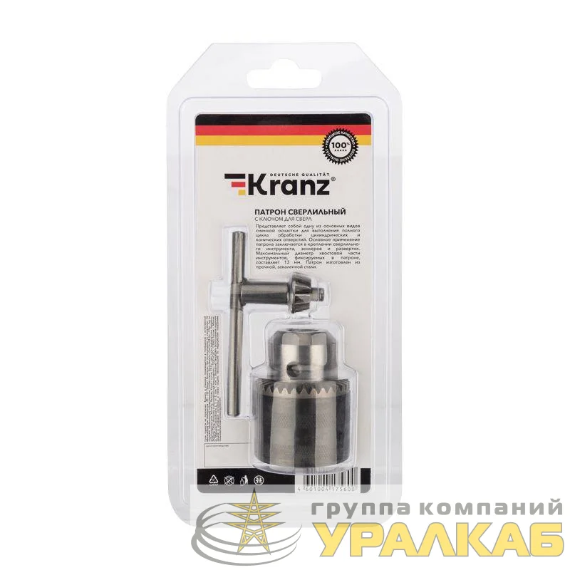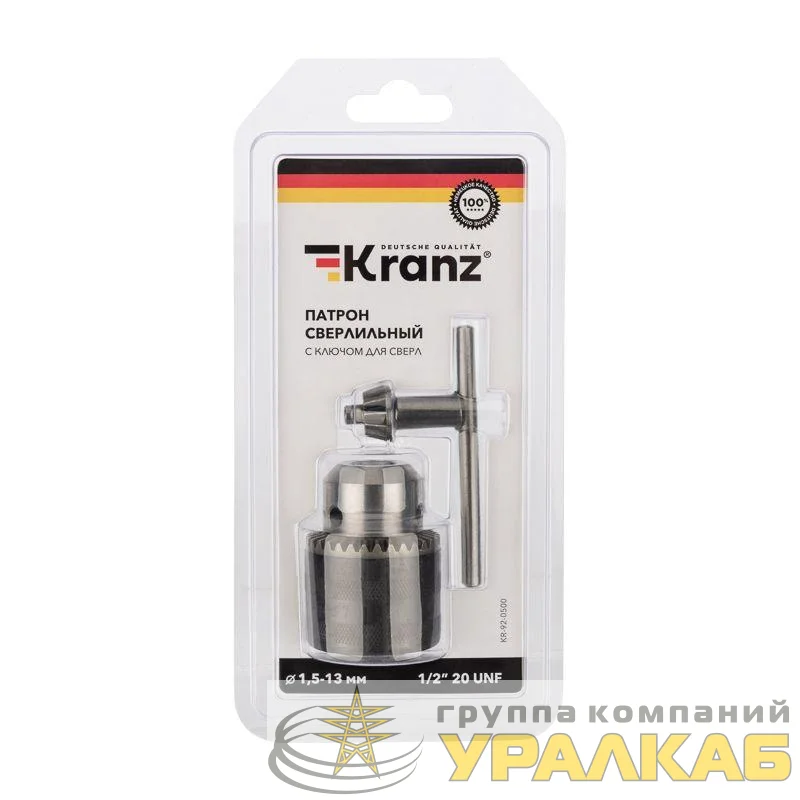 Патрон сверлильный с ключом для сверл 1.5-13.0мм 1/2-20UNF Kranz KR-92-0500