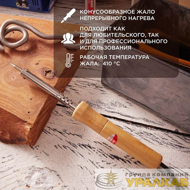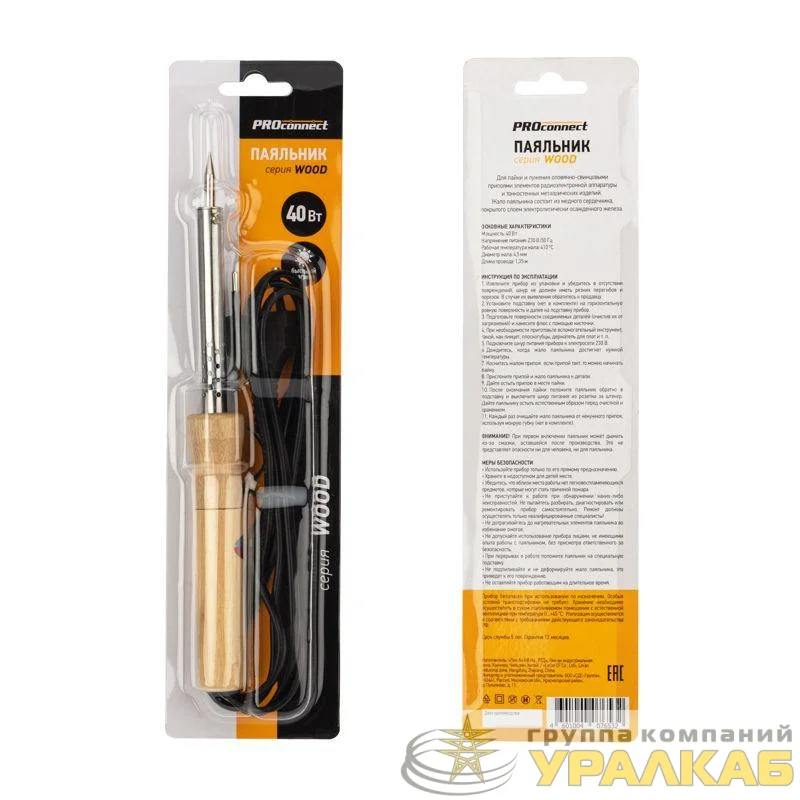 12-0175-4 - Паяльник ПД 220В 40Вт деревянная ручка (блист.) PROCONNECT