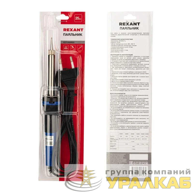 Паяльник с керам. нагревателем долговечное жало 220В/25Вт Rexant 12-0121