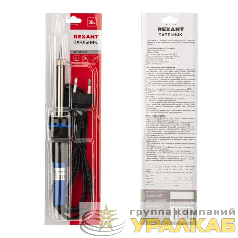 12-0122 - Паяльник с керам. нагревателем долговечное жало 220В/30Вт Rexant