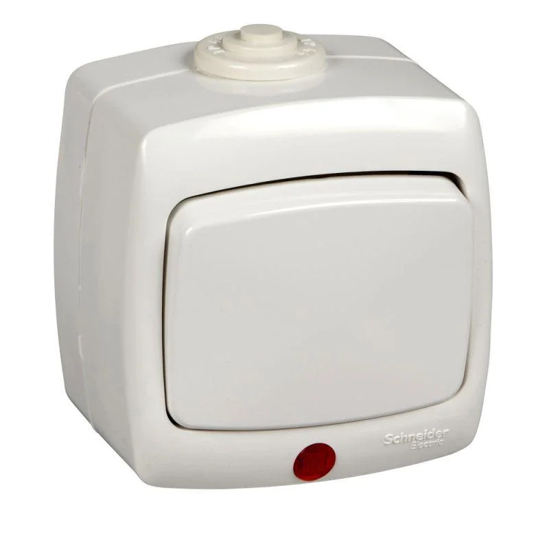 Переключатель 1-кл. ОП Рондо 6А IP44 250В с подсветкой бел. SchE VA66-123B-BI