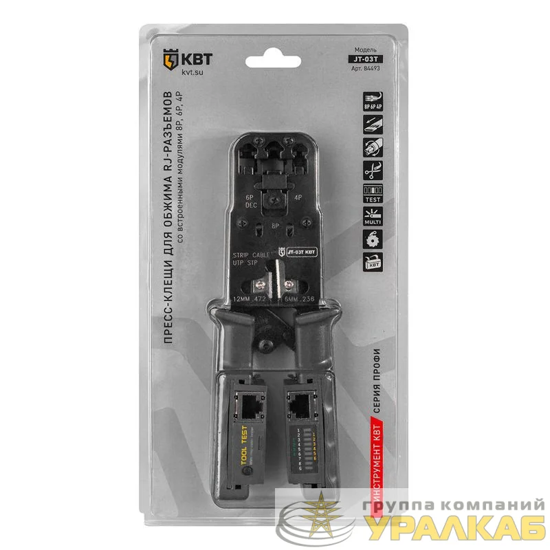 84493 - Пресс-клещи для RJ-разъемов с тестером JT-03T КВТ