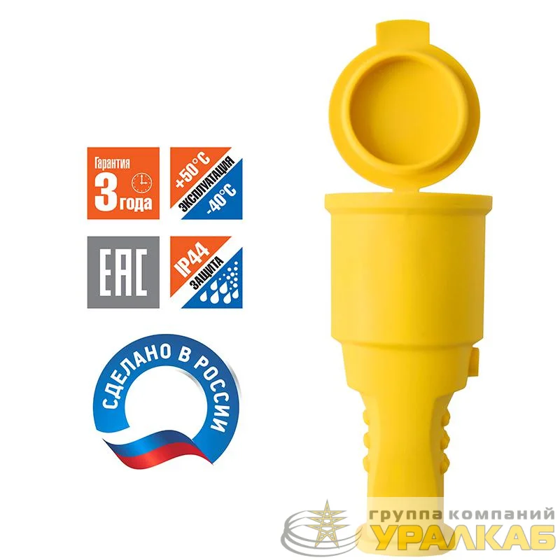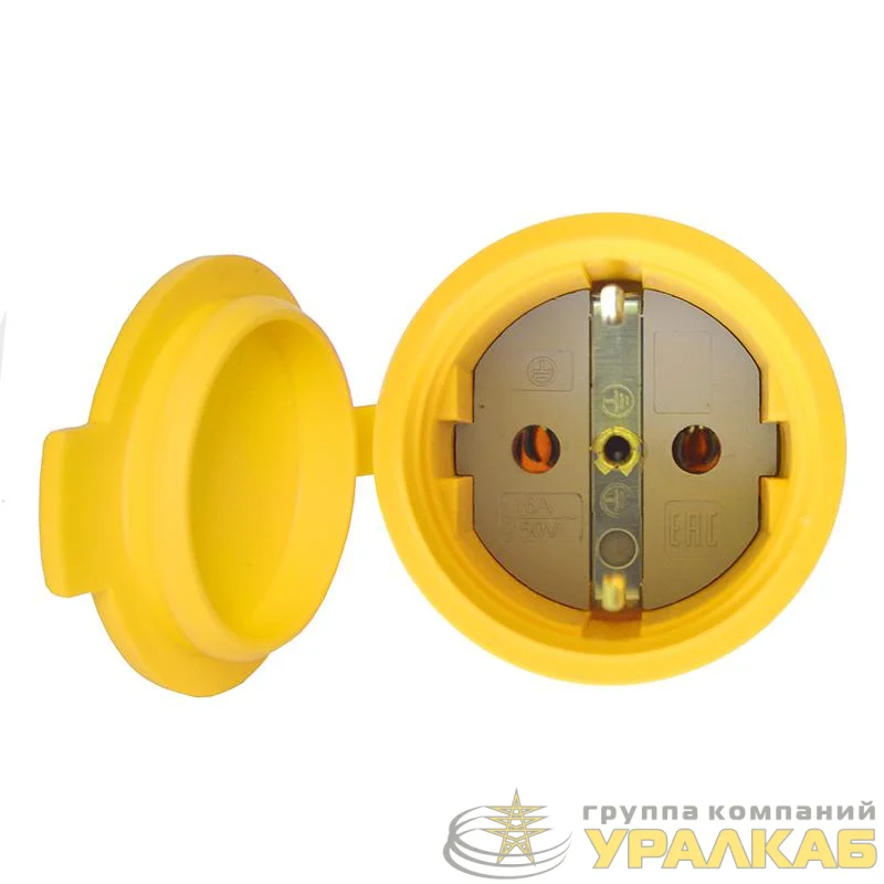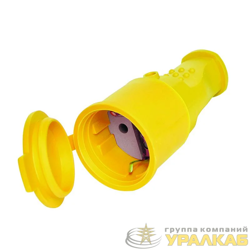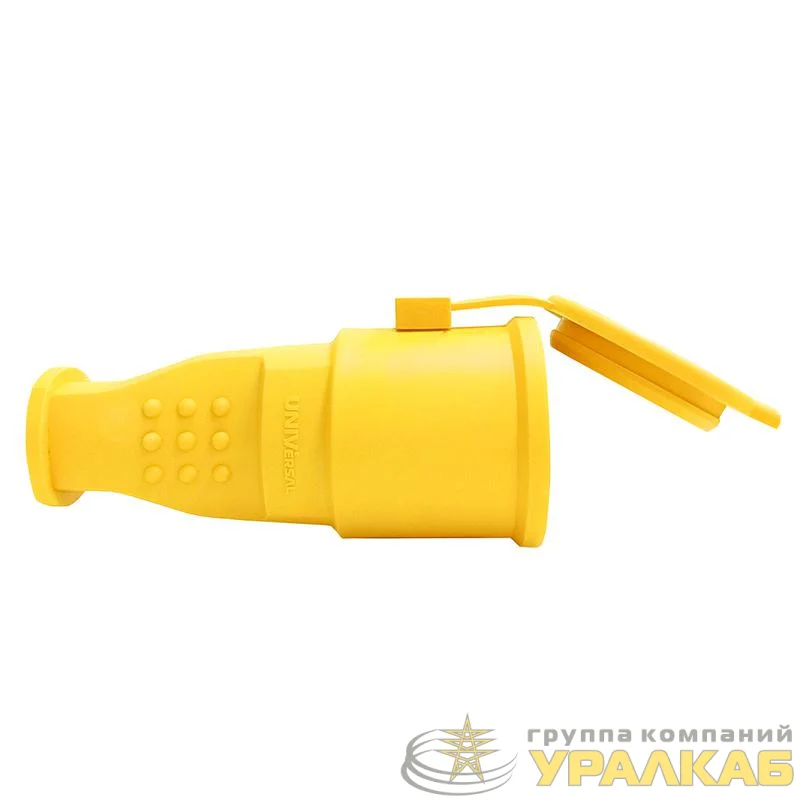 Разъем штепсельный 16А IP44 250В (еврослот) с заземл. каучук желт. Universal 3088