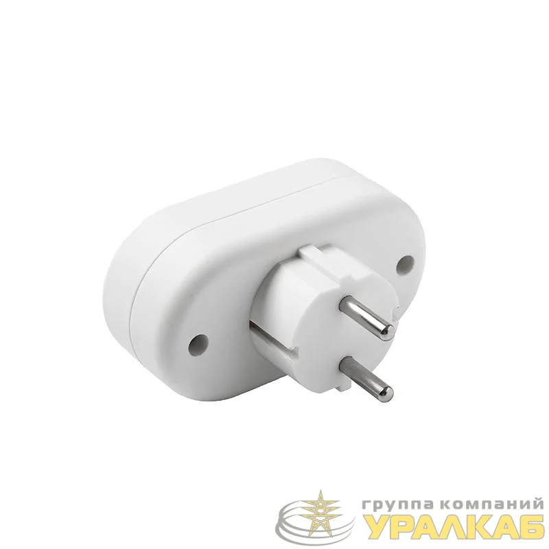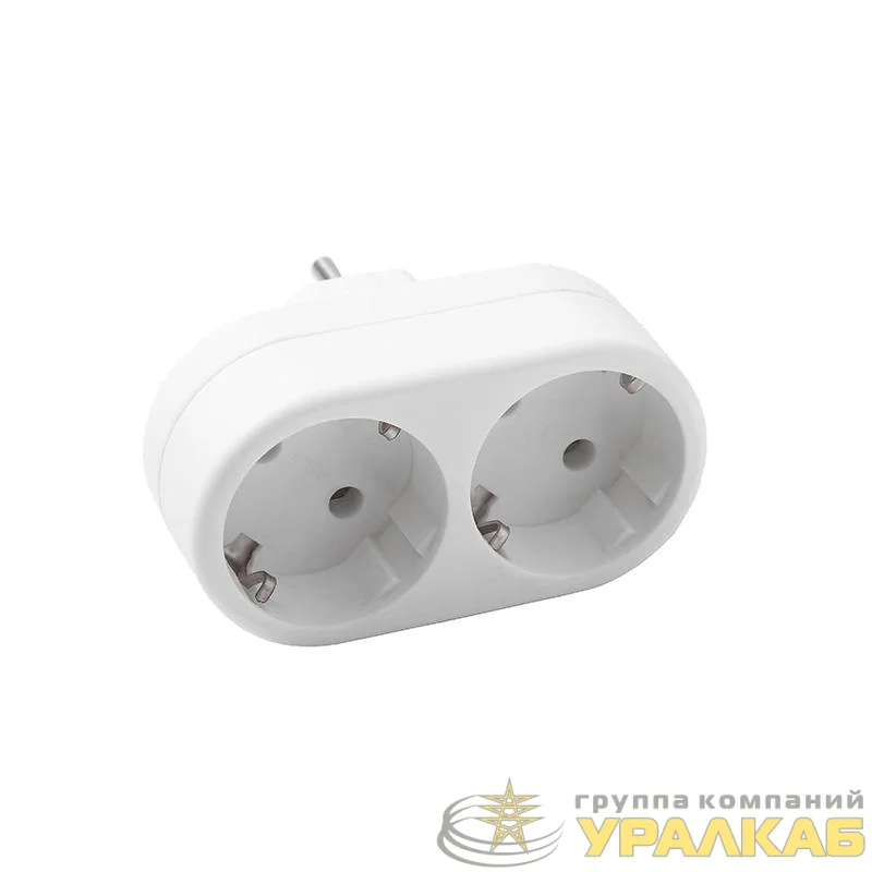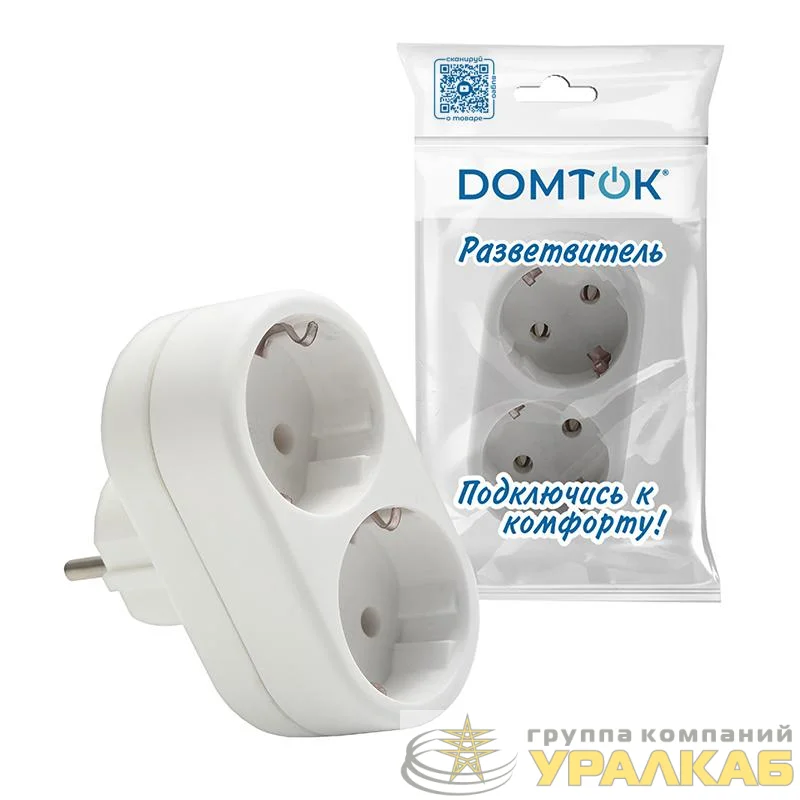 2653 - Разветвитель 2-м плоский с заземл. 16А 3500Вт 250В бел. DОМТОК
