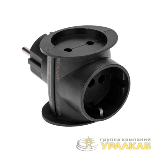 11-1083 - Разветвитель 3-м (1-м с заземл.) 16А универс. черн. Rexant