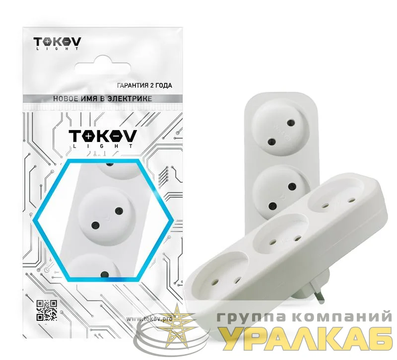 TKL-S3-C01 - Разветвитель 3-м без заземл. 16А 250В IP20 полипропилен бел. TOKOV ELECTRIC