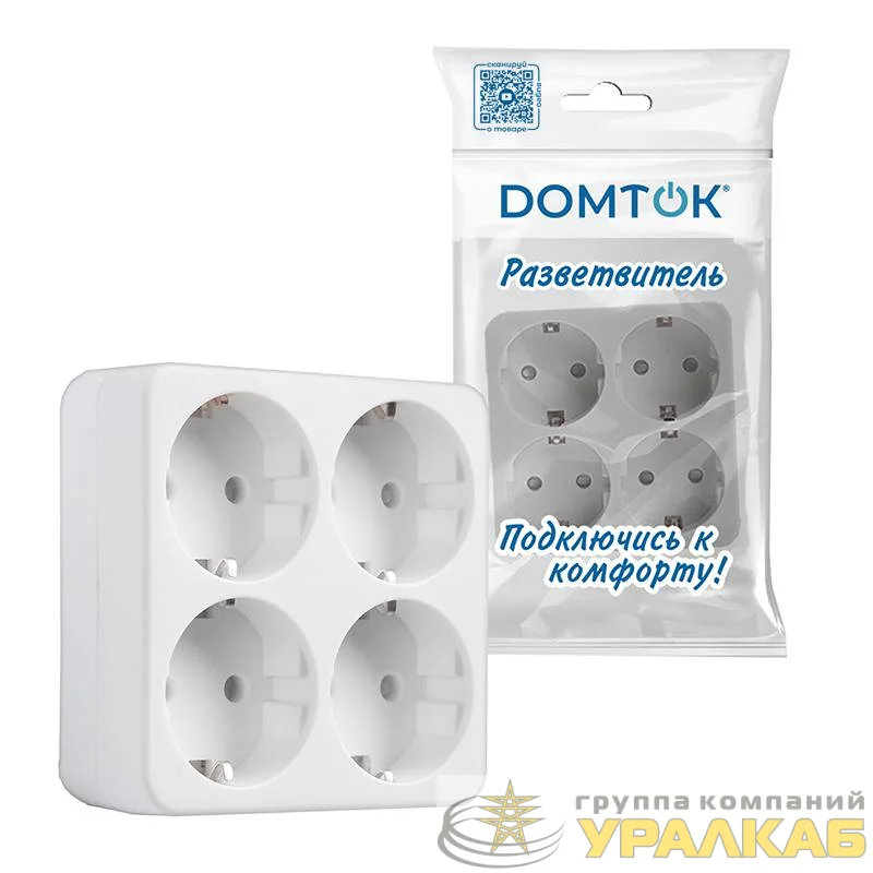 2661 - Разветвитель 4-м квадрат с заземл. 16А 3500Вт 250В бел. DОМТОК