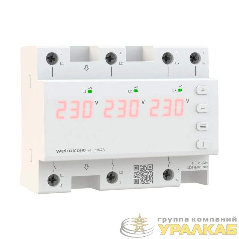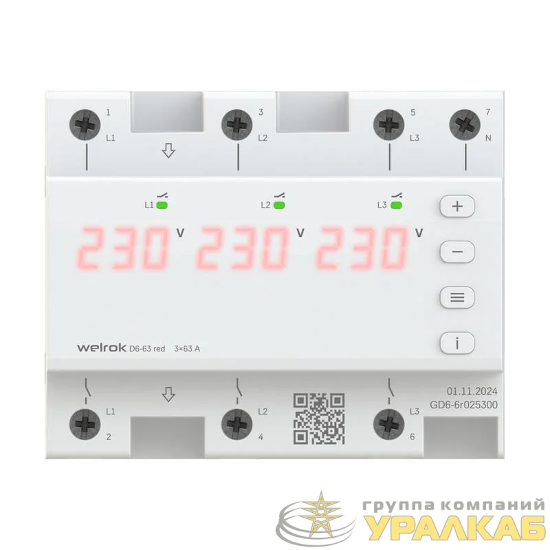 4660251140410 - Реле напряжения D6-63 red Welrok