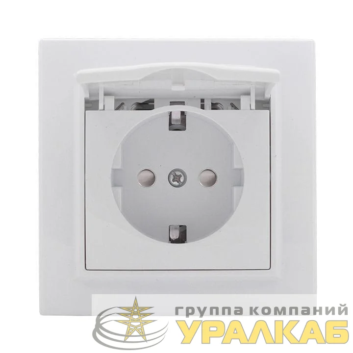 Розетка 1-м СП Минск 16А IP20 с заземл. защ. шторки с крышкой бел. Basic EKF ERR16-029-100