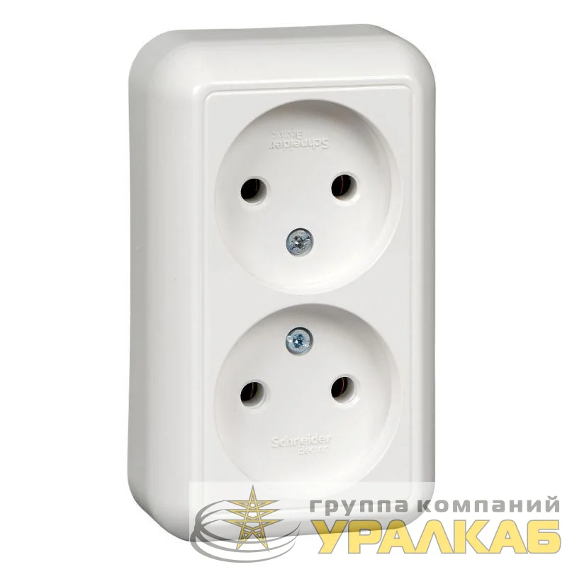 Розетка 2-м ОП Прима 16А IP20 без заземл. без защ. шторок монтаж. пласт. (опт. упак.) бел. SchE RA16-213M-B