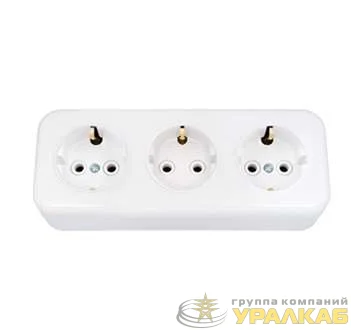 Представляет собой трехместную розетку, с заземлением. Цвет: белый.