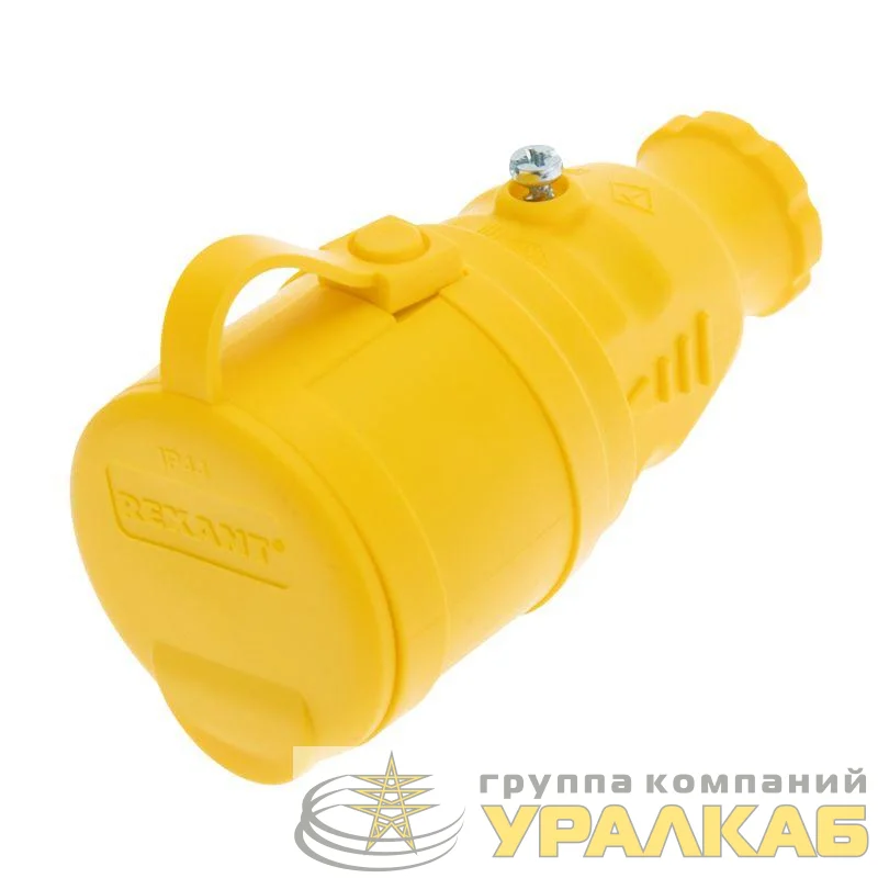 111-122 - Розетка переносная влагозащищенная с крышкой с заземл. 16А IP44 каучук желт. Rexant