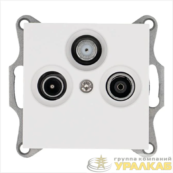 Розетка телевизионная оконечная TV + FM + SAT 3-м Ф9.5мм механизм бел. глянцевый Jasmart G6206W
