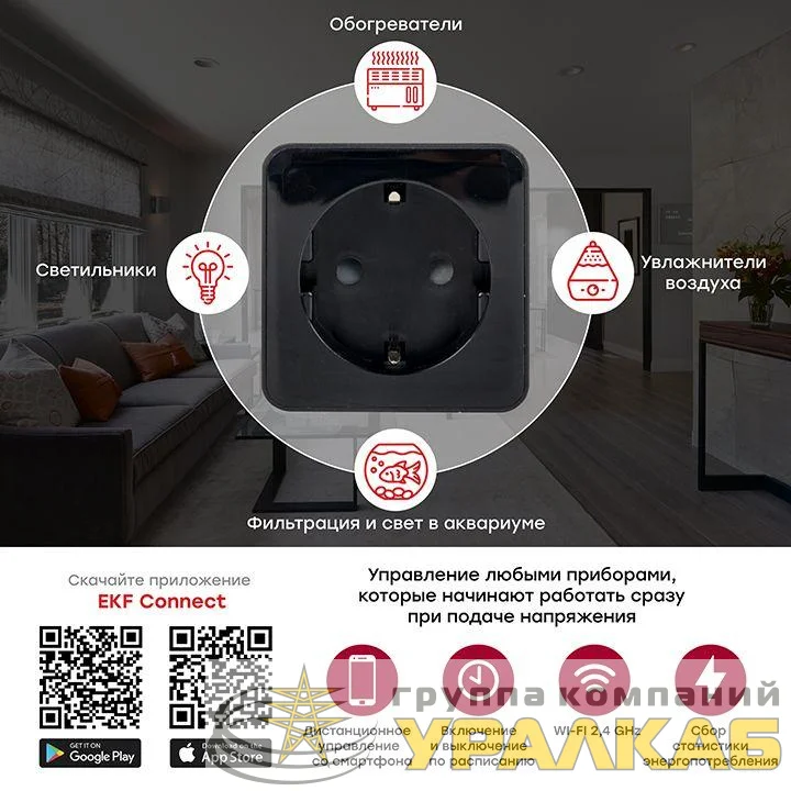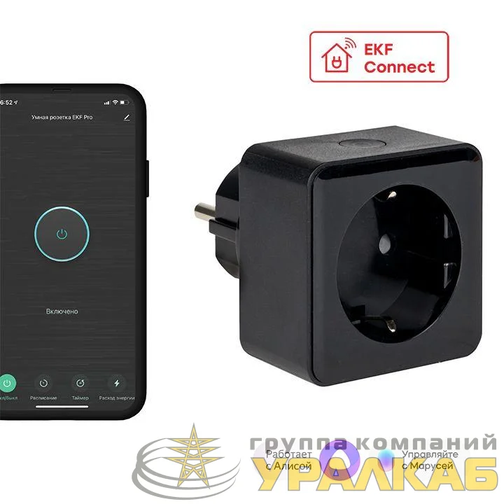 RCS-2-WF - Розетка умная Wi-Fi PRO 1-м 16А IP20 черн. Connect EKF