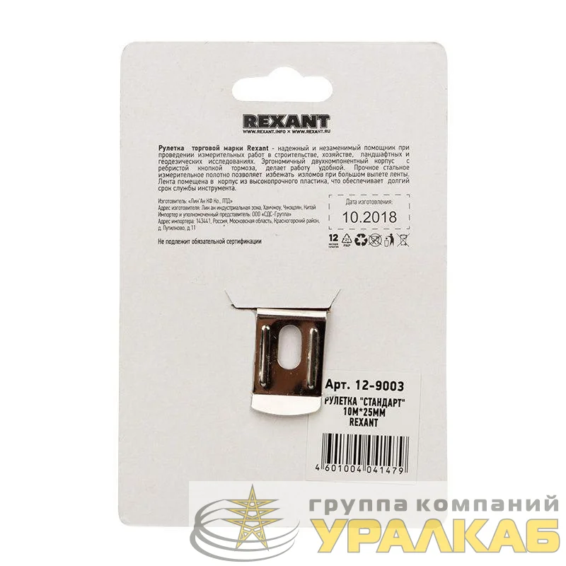 12-9003 - Рулетка измерительная "Стандарт" 10мх25мм Rexant