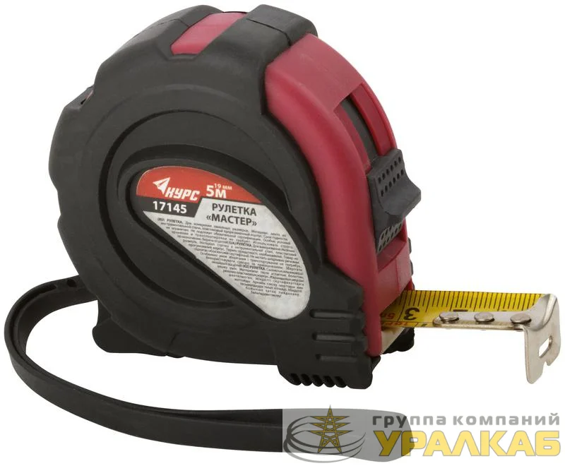 17145 - Рулетка Мастер 5мх19мм прорезиненный корпус КУРС