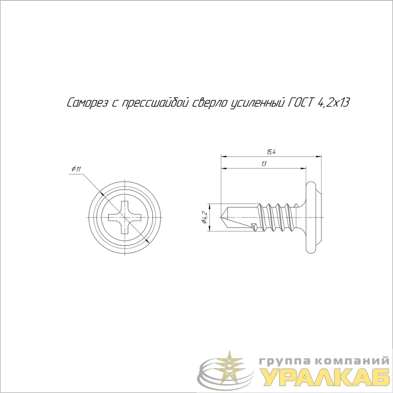 PR17.00324 - Саморез с прессшайбой сверло усиленный 4.2х13 (уп.500шт) Промрукав