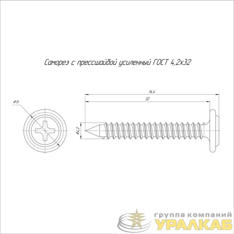 Саморез с прессшайбой усиленный ГОСТ 4.2х32 (уп.100шт) Промрукав PR17.00345
