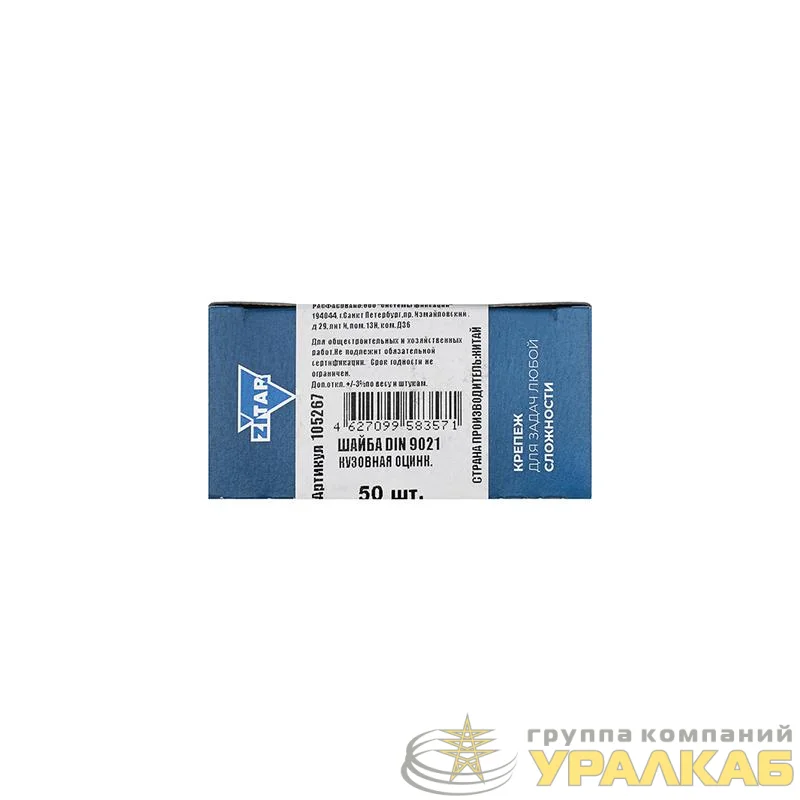Шайба кузовная М10 DIN 9021 оцинк. (коробка) (уп.50шт) Zitar 105267