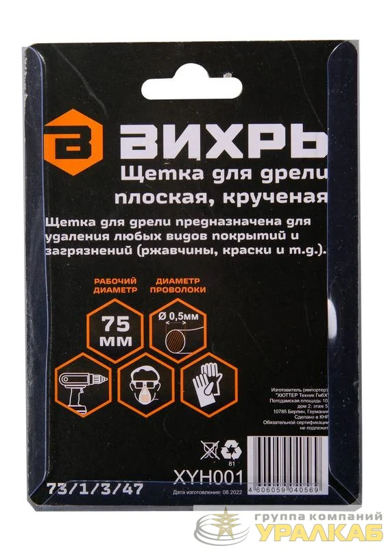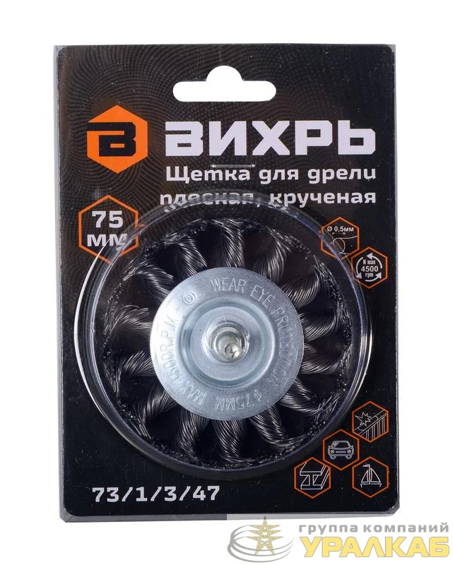 73/1/3/47 - Щетка для дрели плоская крученая 75мм Вихрь