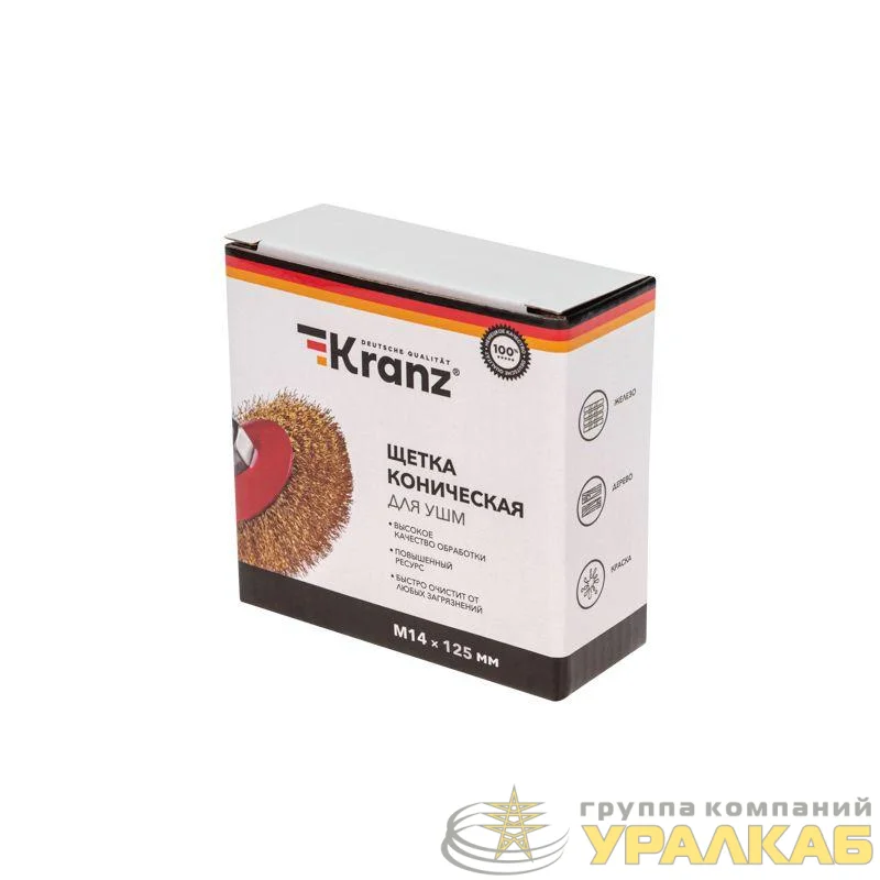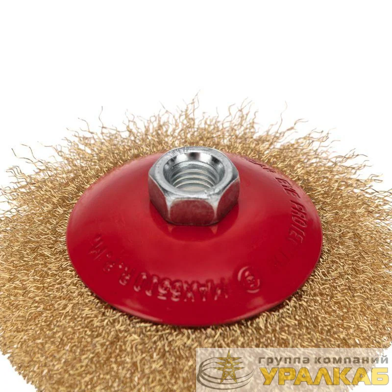 KR-91-1207 - Щетка коническая для УШМ витая латунированная проволока 125мм М14 Kranz