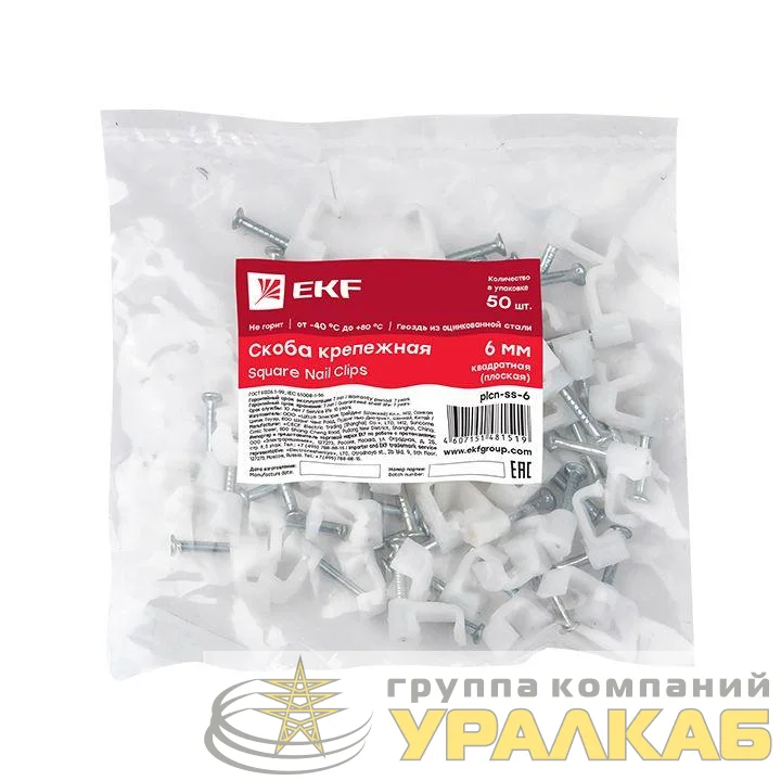Скоба крепежная квадратная плоская 6мм (уп.50шт) EKF plcn-ss-6
