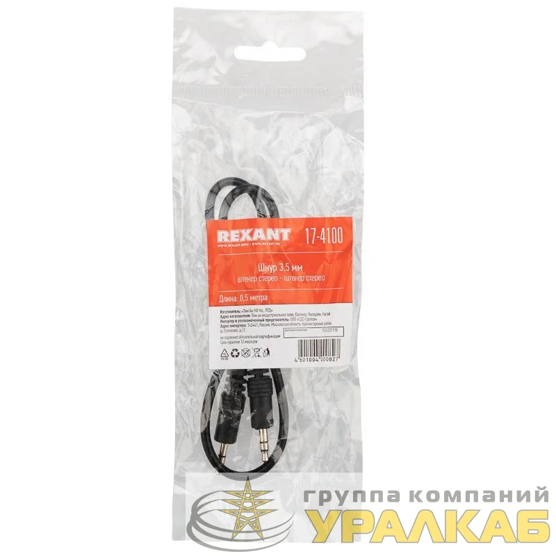 17-4100 - Шнур 3.5мм штекер стерео-3.5мм штекер стерео 0.5м REXANT