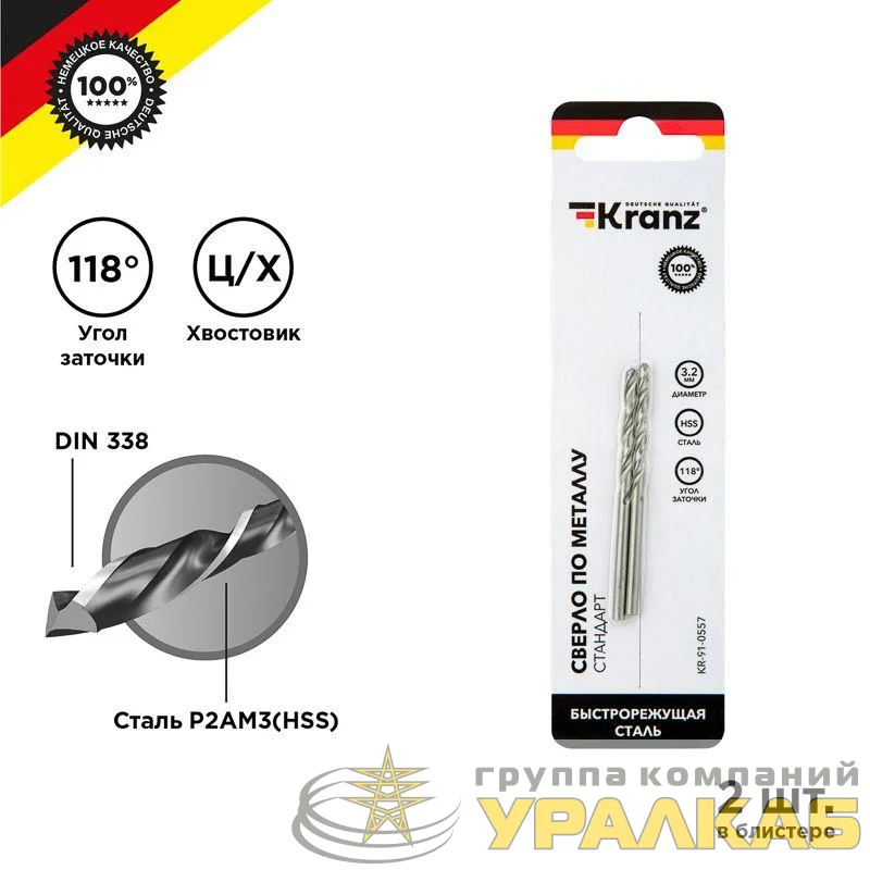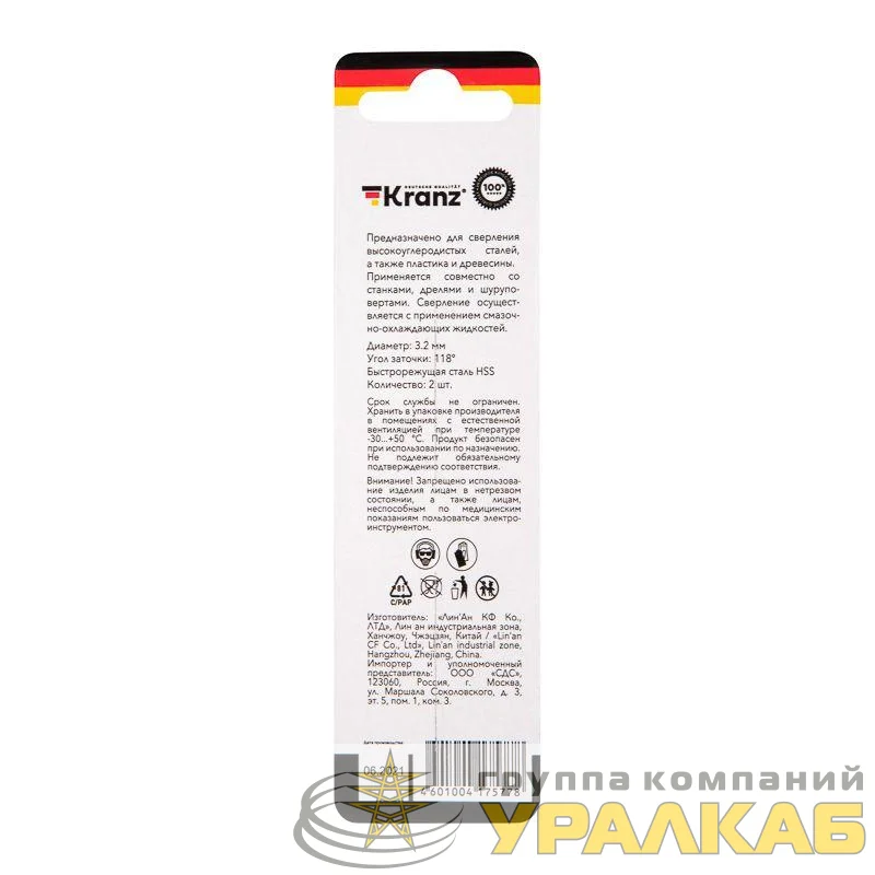 KR-91-0557 - Сверло по металлу 3.2мм HSS DIN 338 (уп.2шт) Kranz