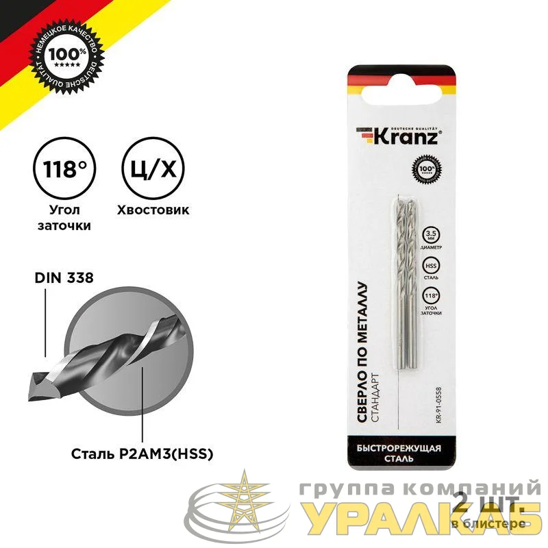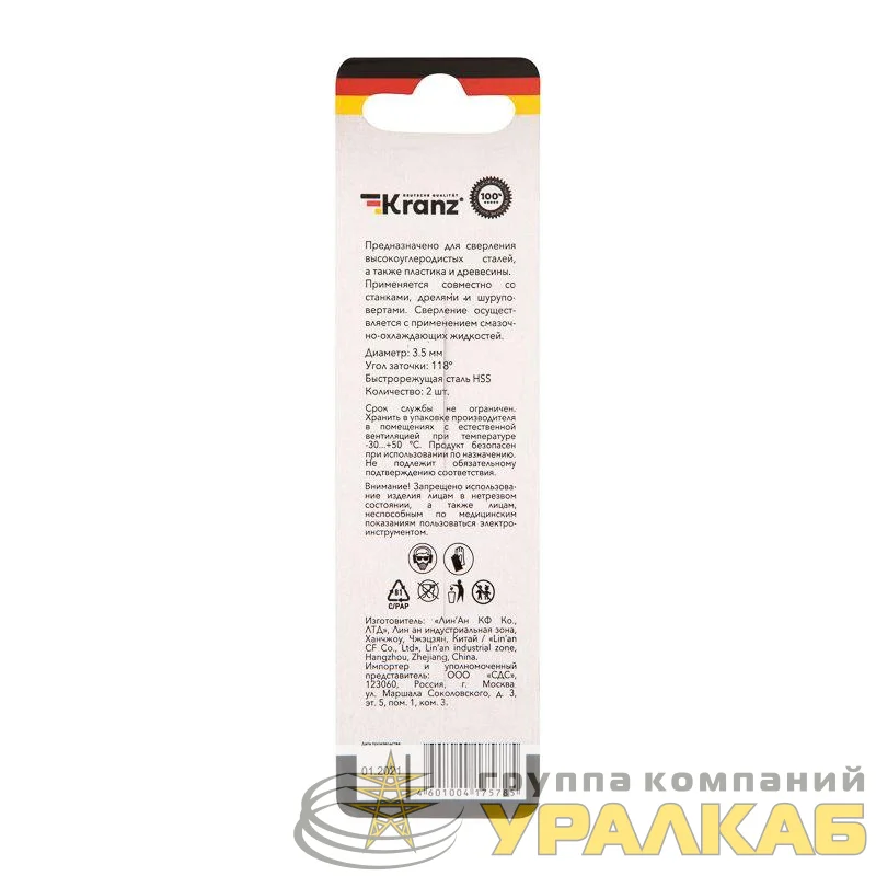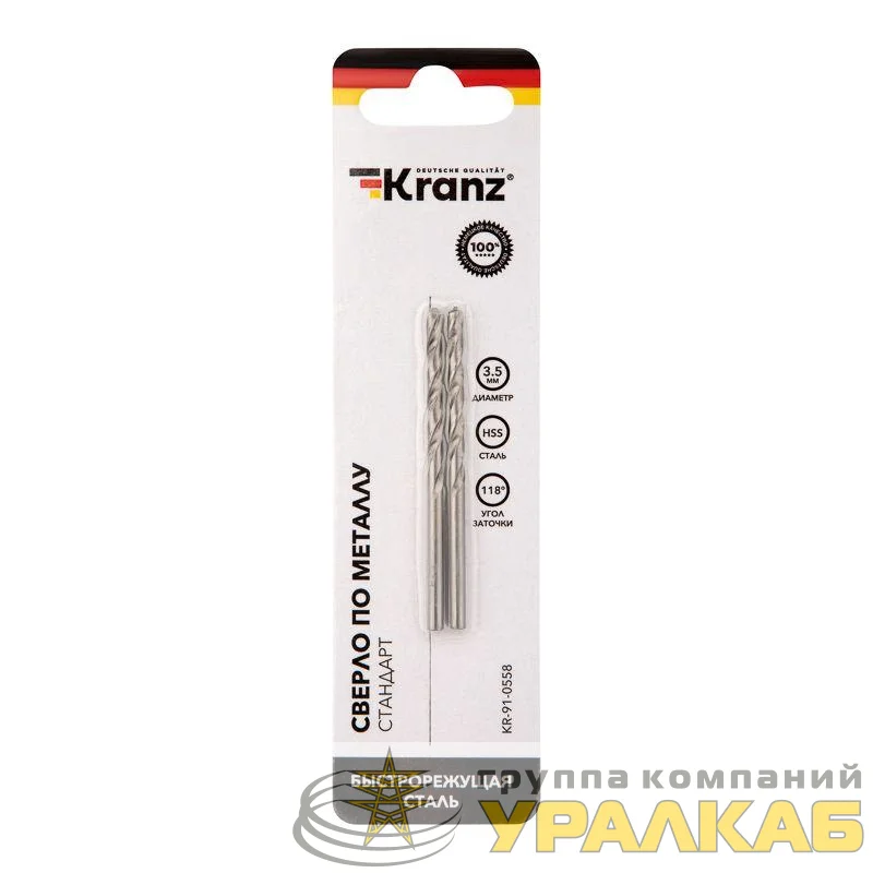 KR-91-0558 - Сверло по металлу 3.5мм HSS DIN 338 (уп.2шт) Kranz