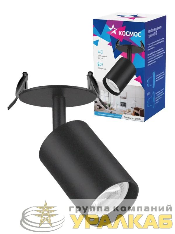 Светильник светодиодный FixtGU10_001Black GU10 встраив. поворотн. черн. КОСМОС KFixtGU10_001Black
