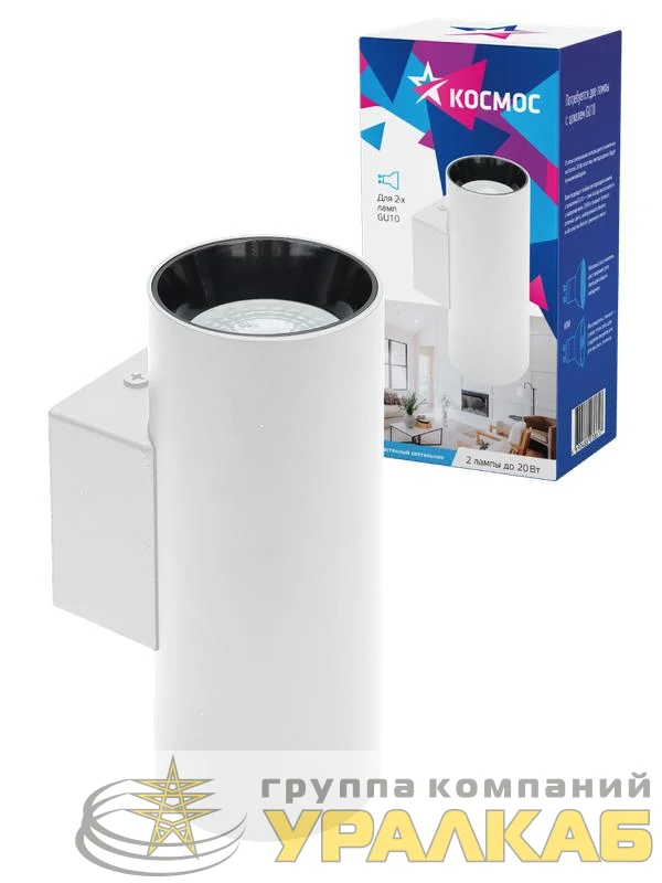 KFixtGU10_003White - Светильник светодиодный FixtGU10_003White под 2 лампы GU10 накладной бел. КОСМОС