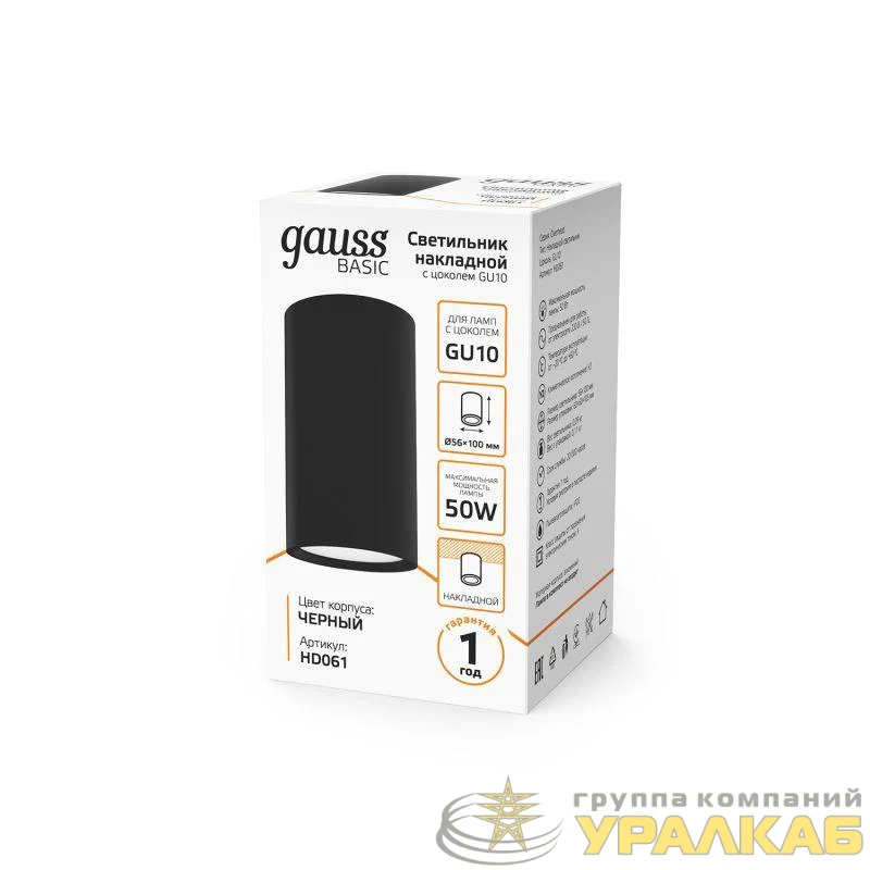 HD061 - Светильник Basic накладной под лампу GU10 черн. GAUSS