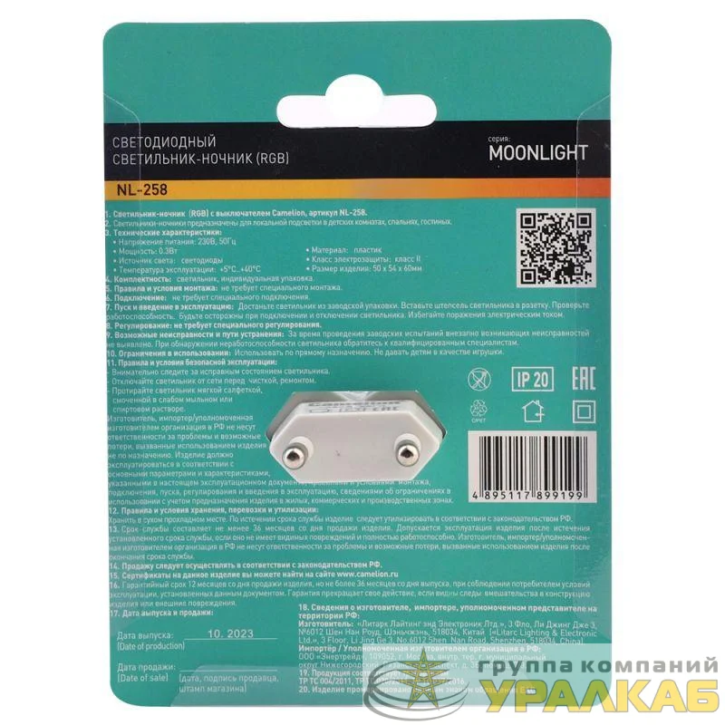 15376 - Светильник-ночник светодиодный NL-258 "яблоко RGB" 220В Camelion