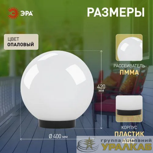 Б0048739 - Светильник садово-парковый Шар D400мм E27 бел. НТУ 01-150-401 ЭРА