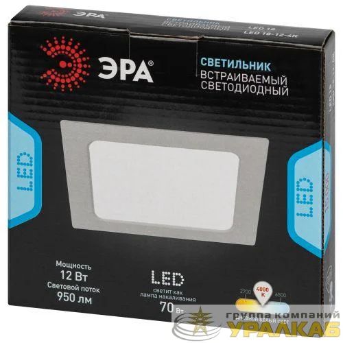 Б0057443 - Светильник светодиодный LED 18-12-4K 12Вт 4000К встраив. квадратный ЭРА