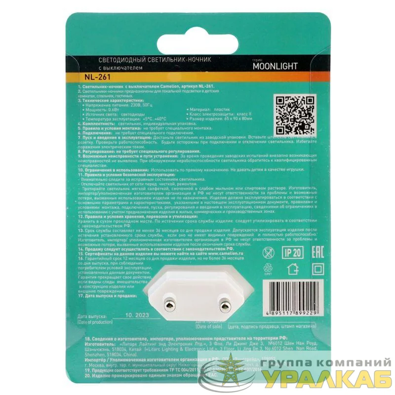 15379 - Светильник светодиодный ночник LED с выкл 220В NL-261 Camelion