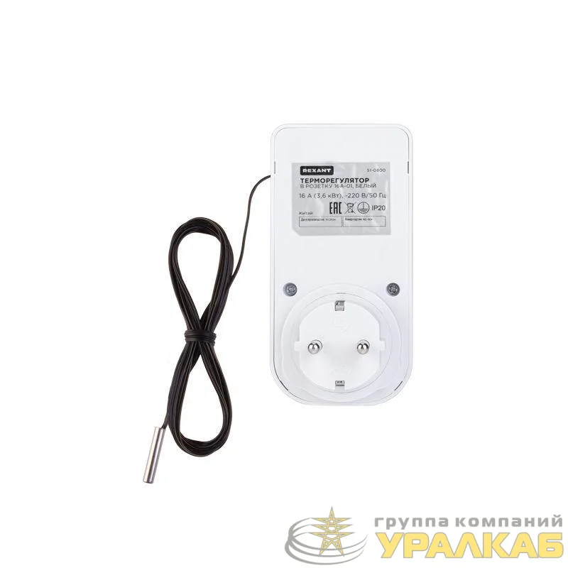 51-0800 - Терморегулятор в розетку 16А-01 бел. Rexant