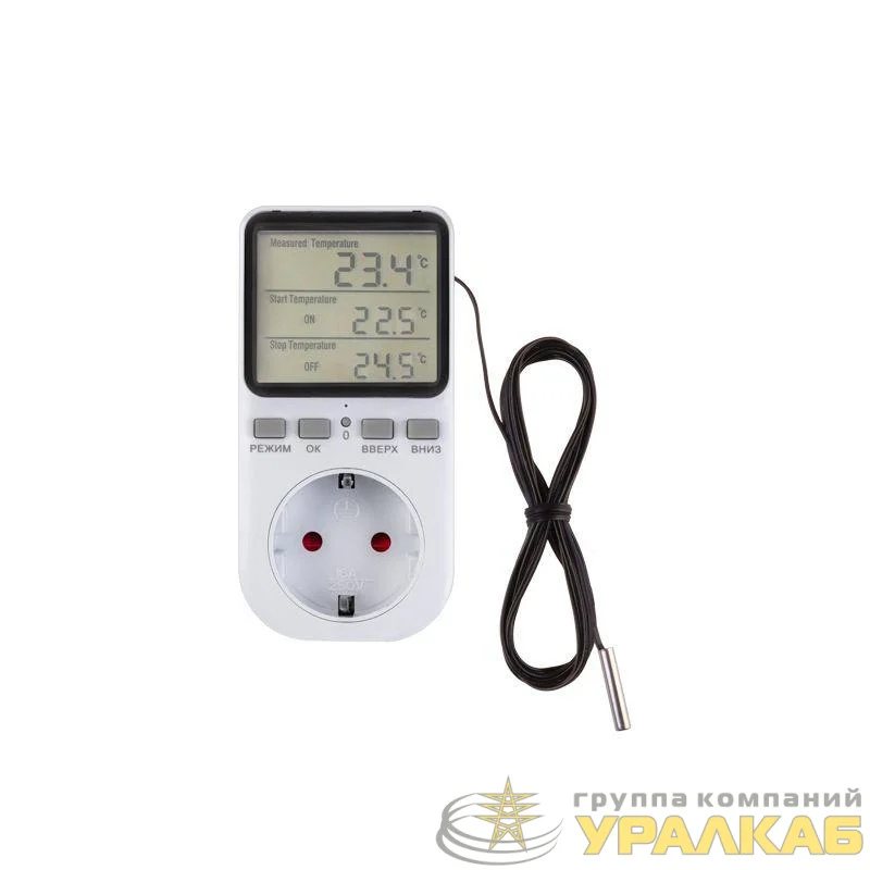 Терморегулятор оснащен подсветкой, что позволяет легко считывать данные даже в условиях недостаточного освещения.