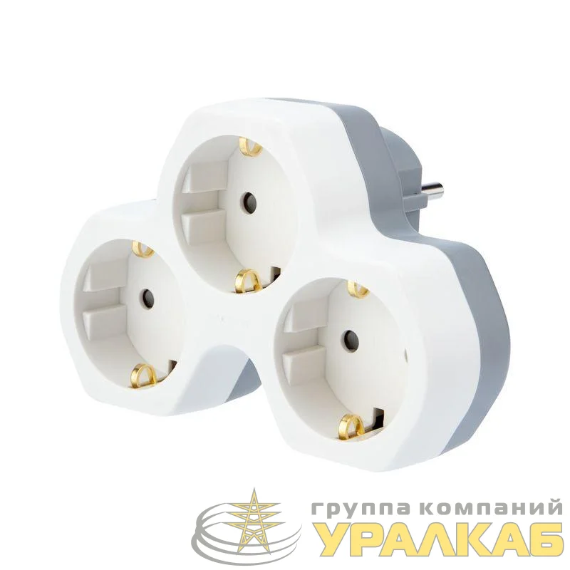 11-1088 - Разветвитель 3-м с заземл. 16А IP20 защ. шторки бел. Rexant